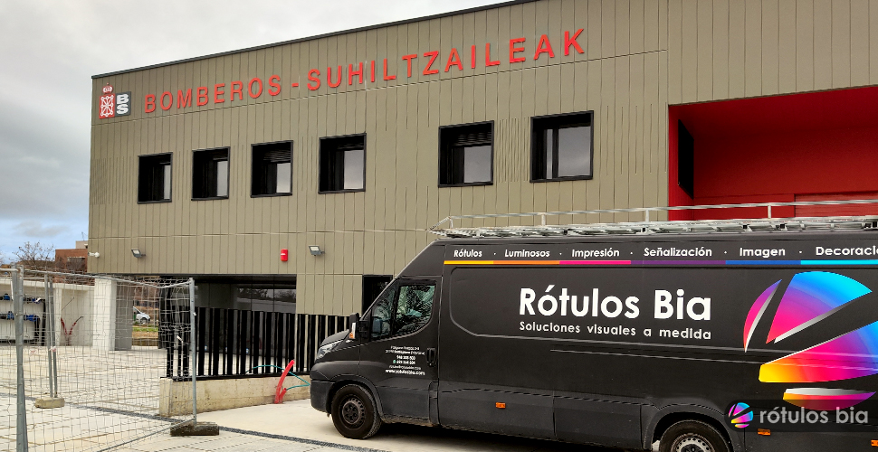 En el Parque de Bomberos de Tafalla hemos desarrollado una solución integral de rotulación que abarca: